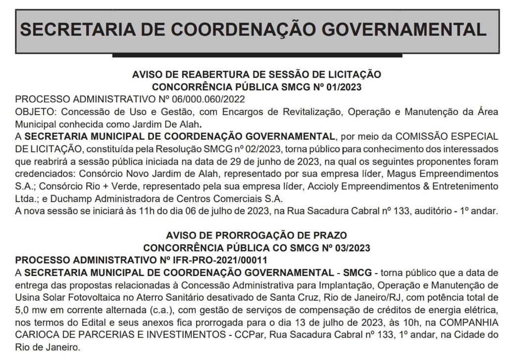 Adiamento da concorrência SMCG n 03/2023