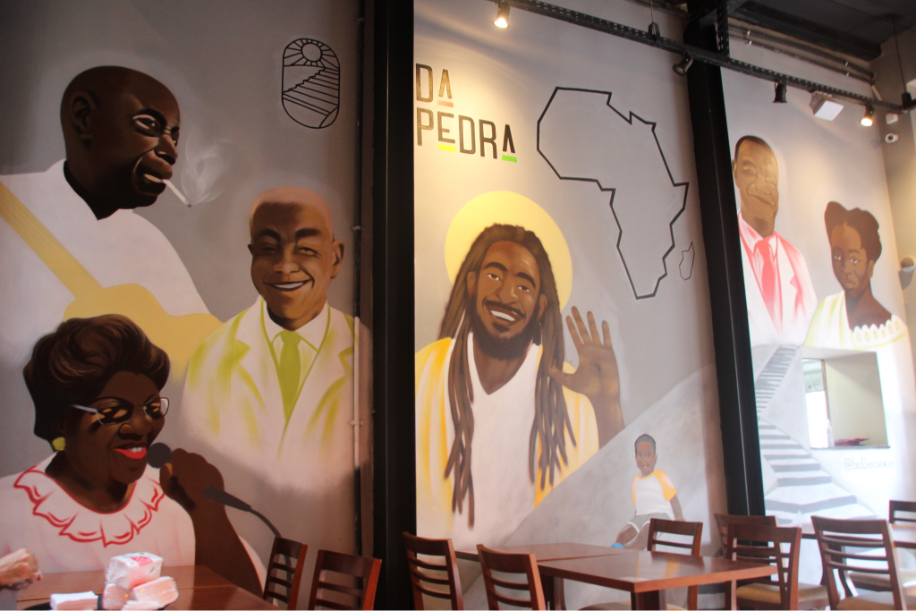 Um prato típico é aquele que consegue preservar e envolver saberes, são coisas que não se perdem com o tempo. O da Pedra segue o mesmo princípio: a comida é o principal passaporte para essa viagem cultural, mas não o único. As paredes do bar retratam e resgatam a cultura do local por meio de ícones que viveram ali e fizeram do samba o que ele é hoje. Figuras como Donga, João da Baiana, Tia Ciata e Pixinguinha são reverenciados. Fechando com a imagem de um Jesus Cristo negro. As ilustrações são assinadas por Eduardo Fernandes, o @bisthecookie.